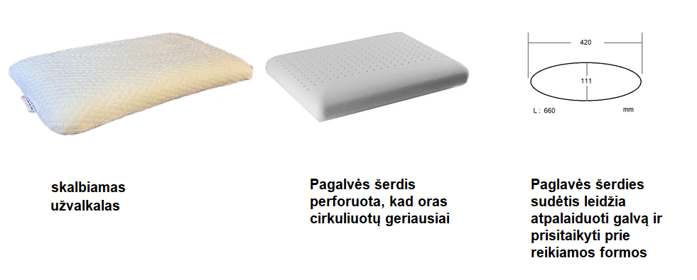 Pagalė yra tradicinės pailgos formos, mėgtantiems klasikinį dizainą, o jos šerdis minkšta ir elastinga, kas suteikia ergonomišką padėtį ir taisyklingą kaklo atramą, kad kaklo raumenys atsipalaiduoja, kas įtakoja ir taisyklingą stuburo padėtį. Gali būti, kad turite ergonominį čiužinį, tačiau jeigu Jūsų kaklas bus įtempas ir neteisingoje padėtyje, tai gali įtakoti ir nugaros skausmus.